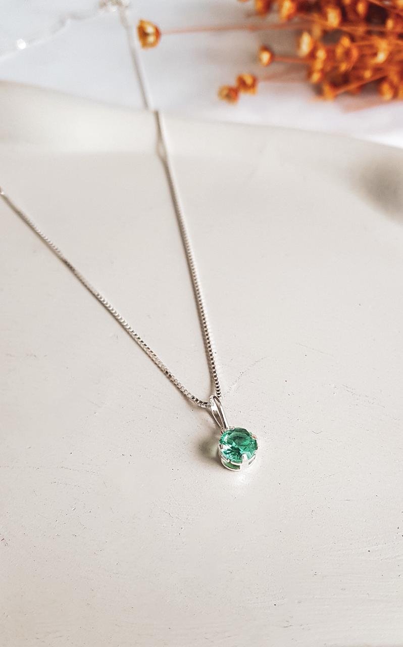 Um colar delicado e sofisticado, perfeito para quem busca um acessório elegante sem abrir mão da leveza. A corrente fina em prata realça o brilho da pedra verde central, que traz um toque de cor suave e moderna ao look.